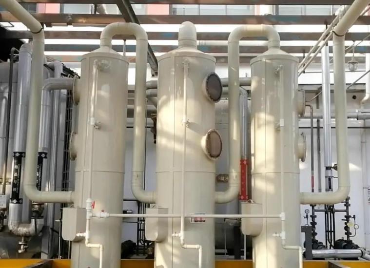 液相路径:废水首先进入2#吹脱塔进行初步分离处理,经一级吹脱后由2#塔专属输送泵导入1#吹脱塔开展深度处理;经过两级串联吹脱净化,废水中的氨氮浓度可降至200mg/L以下,达标后需投加4%废硫酸溶液回调pH值,再由1#塔输出泵送往后续污水处理单元。